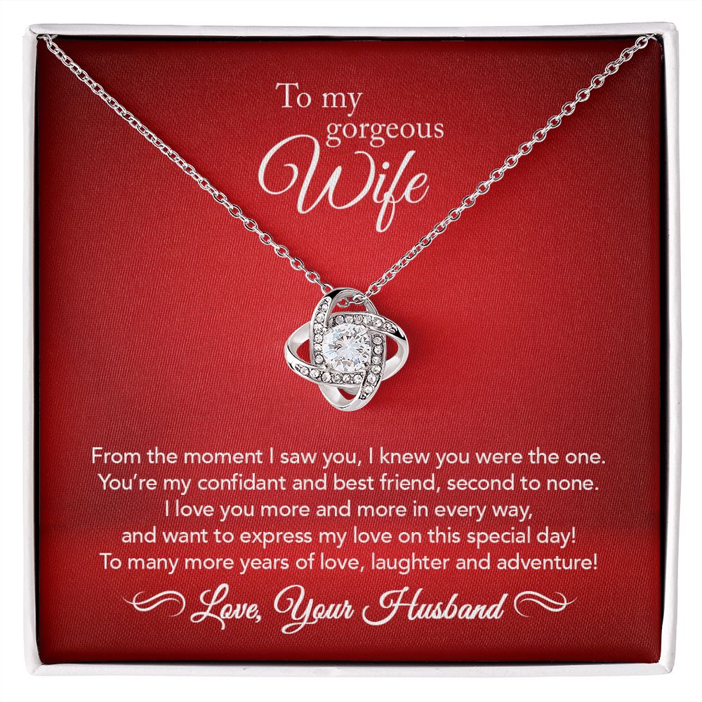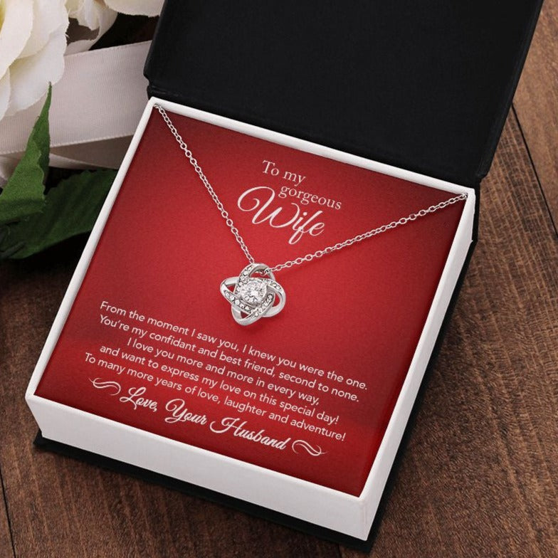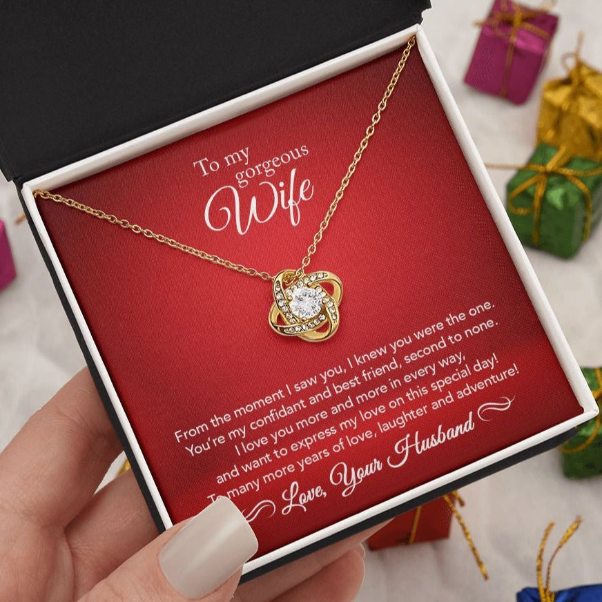 To My Wife - Confidant & Best Friend - Love Knot Necklace - Crimson Message Card